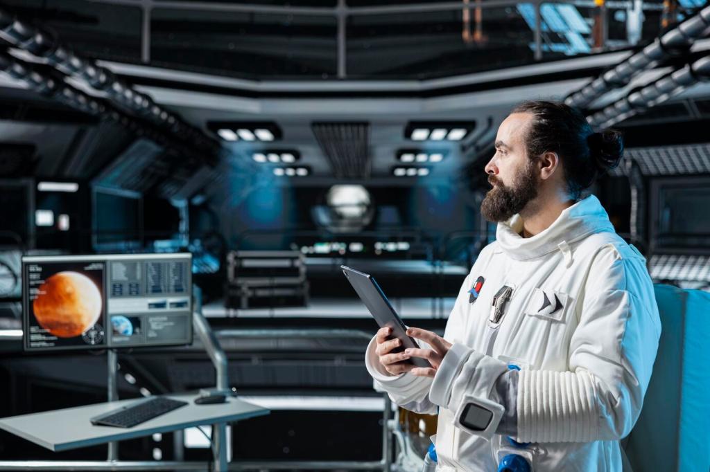 Durch Kabelkanäle, Klettbänder und eine Dockingstation verschwindet Technik im Hintergrund. Markiere Kabel farblich je Gerät, dann bleibt Umräumen stressfrei. Einseitig beschriftete Clips sparen Zeit. Zeig uns dein elegantestes Kabel-Setup als Foto oder Skizze.